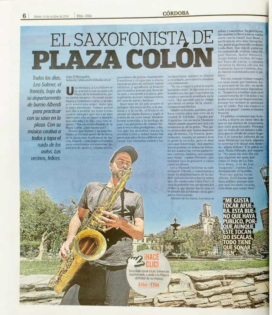 Couverture du journal argentin "Día a Día", quotidien de Córdoba, avec une double page consacrée à l'artiste :